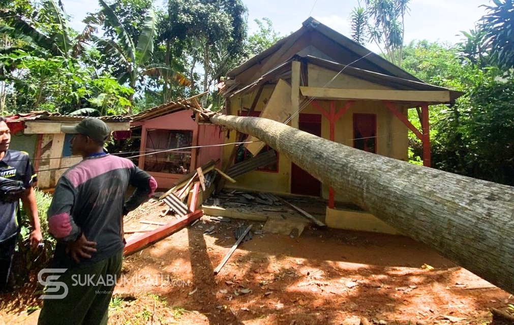 ”Kejadiannya tadi siang saat angin kencang. Pohon Afrika di dekat rumah warga tumbang dan langsung menimpa bagian dapur. Di dalam rumah tersebut ada satu KK dengan dua jiwa, alhamdulillah semuanya selamat,” ujar Jenal kepada SukabumiSatu.com.