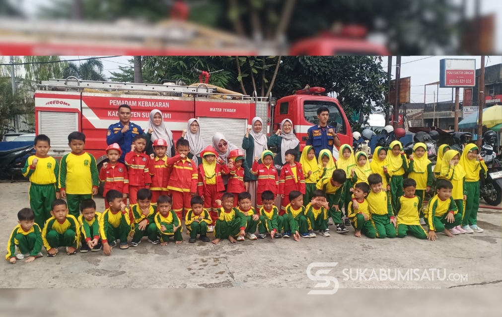 SUKABUMISATU.COM, CIBADAK – Puluhan siswa dari RA Ad-Da’wah Cibadak mendatangi Markas Pemadam Kebakaran Pos Sektor V Cibadak, Kabupaten Sukabumi, Kamis (09/04/2026). Kedatangan rombongan bocah-bocah lucu ini bukan untuk melaporkan musibah, melainkan untuk belajar menjadi “pahlawan penjinak api” sejak dini.