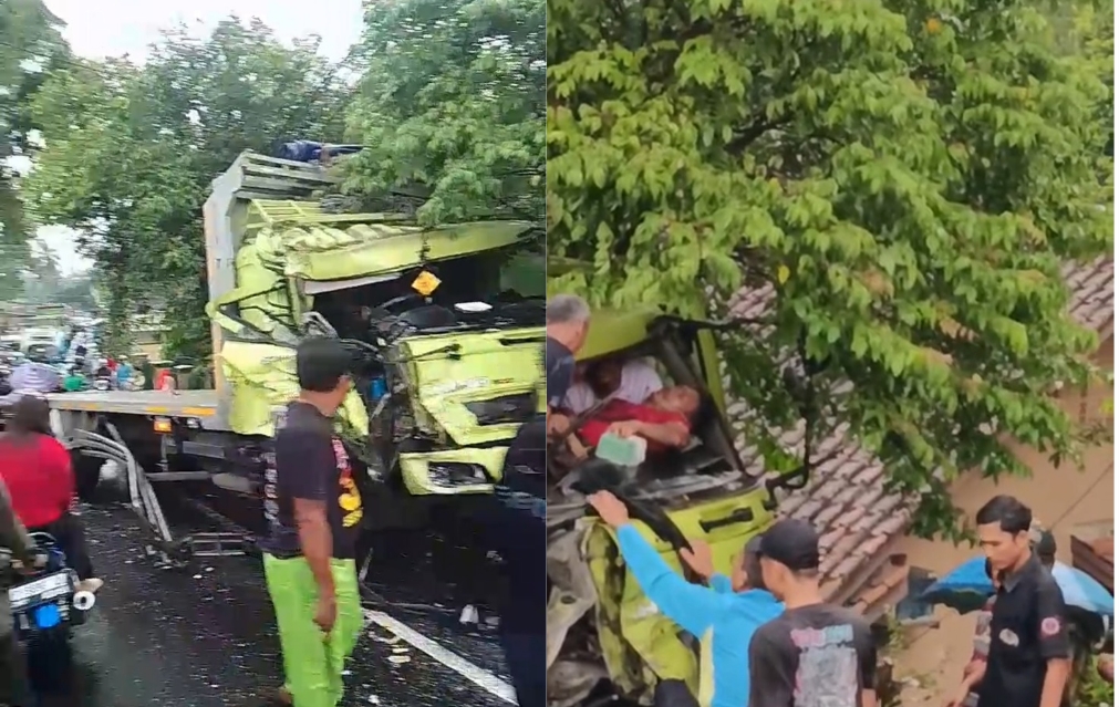 “Saya lagi buka warung, terus ada suara tabrakan di tanjakan itu. Kebetulan pas hujan deras. Saya langsung lari, dan lihat sopir masih pada di dalam kendaraan,” ujar Yadi.