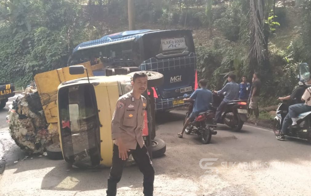 “Saya dari Palabuhanratu mau ke TPA Cimenteng. Pas hindari lubang dan jalan miring, truk langsung terbalik,” ujar Akusmawan.