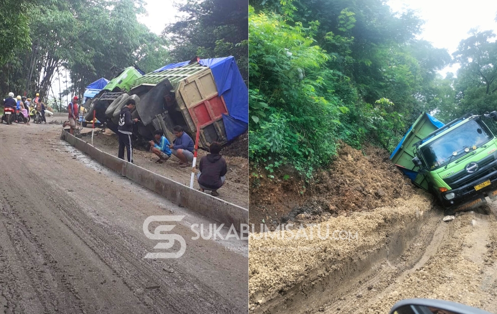 SUKABUMISATU.com – Proses perbaikan jalan provinsi di wilayah Jampang Tengah, Kabupaten Sukabumi, terganggu akibat aktivitas mobil tambang berkapasitas besar yang tetap beroperasi di tengah proyek. Bahkan, salah satu truk tambang yang diduga overload terguling di badan jalan yang sedang diperbaiki, memicu kemacetan panjang hingga berjam-jam. Jum’at, (24/10/25).