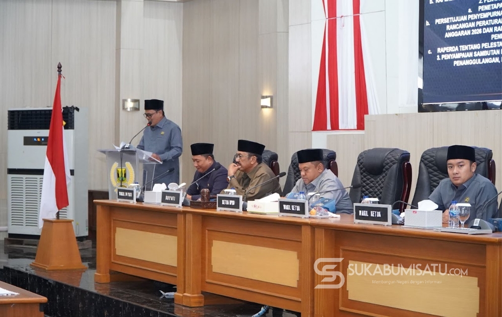 Sementara itu, Pimpinan Badan Anggaran DPRD, H. Usep, menyampaikan laporan hasil pembahasan bersama TAPD terkait evaluasi Gubernur Jawa Barat terhadap Raperda APBD Kabupaten Sukabumi Tahun Anggaran 2026.