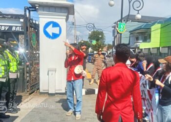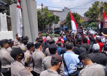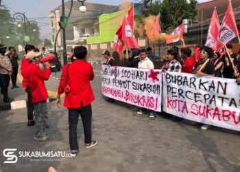 SUKABUMISATU.com - Puluhan massa yang tergabung dalam Gerakan Mahasiswa Nasional Indonesia (GMNI) Sukabumi Raya melakukan aksi unjuk rasa di depan ...