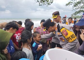 Manisnya Pantai Palabuhanratu, Kapolres Sukabumi Bagi-bagi Ratusan Es Krim ke Bocah Pesisir
