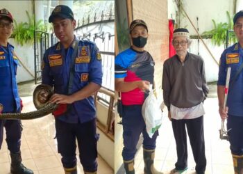 SUKABUMISATU.COM - Petugas Dinas Pemadam Kebakaran dan Penyelamatan (DKP) Kabupaten Sukabumi Posko 4 Cibadak menangkap seekor ular piton di Kampung ...